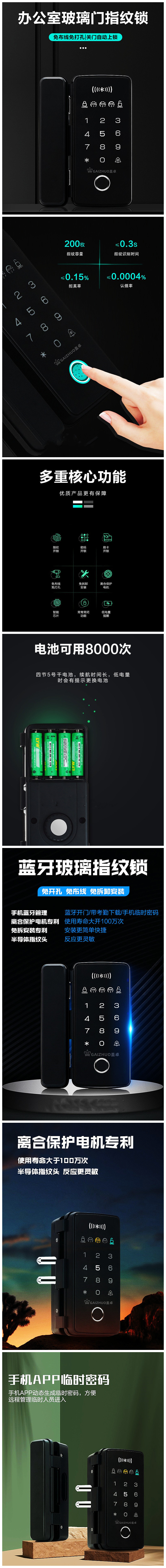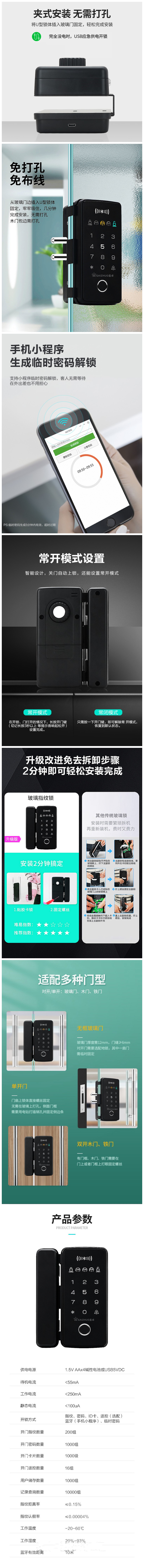 盖卓508玻璃门指纹锁免开孔