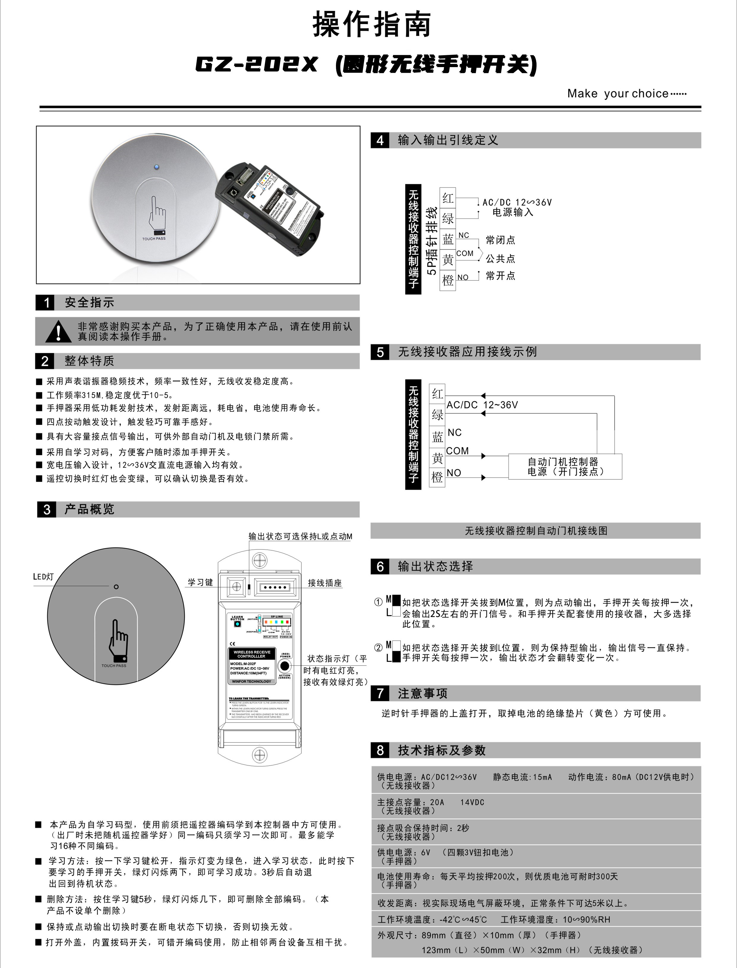 自动感应门无线手押开关202E